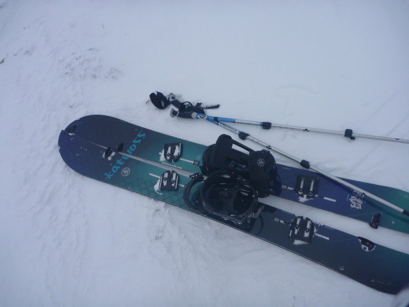 スノーボードとストックでは進むのが困難極まりない。