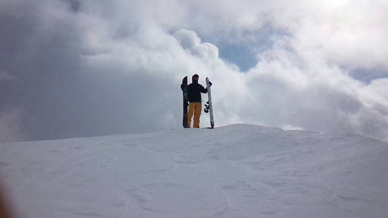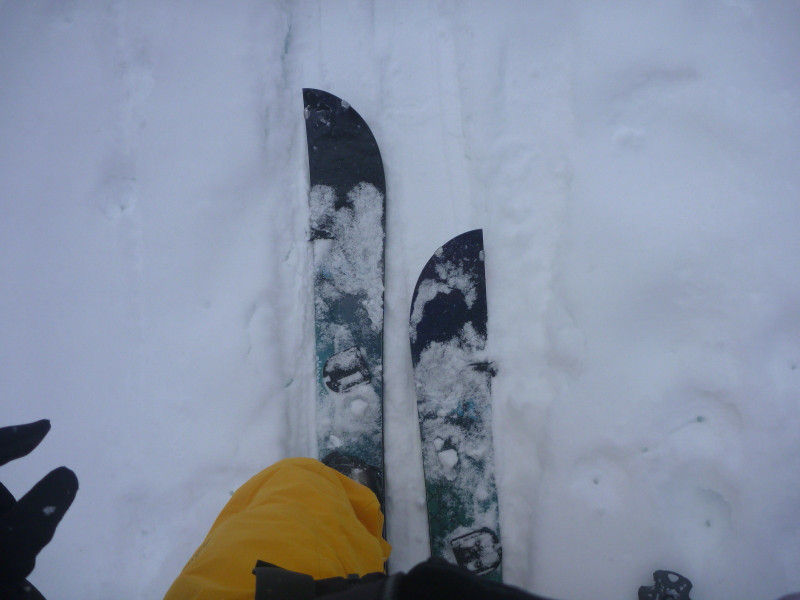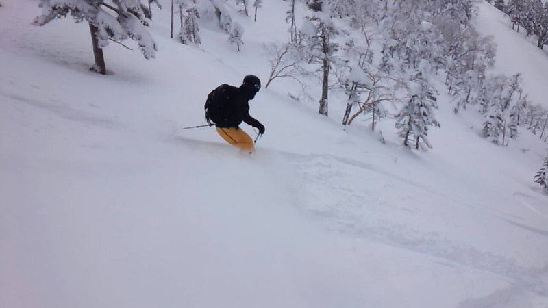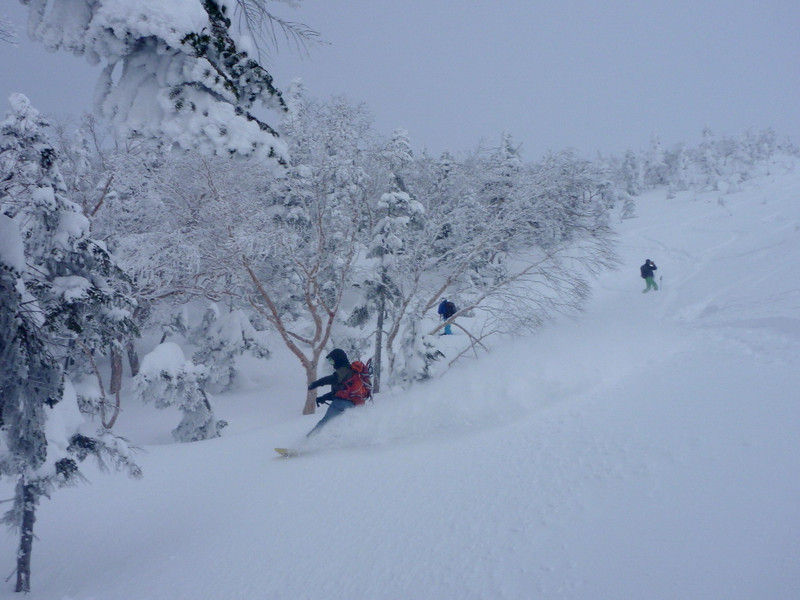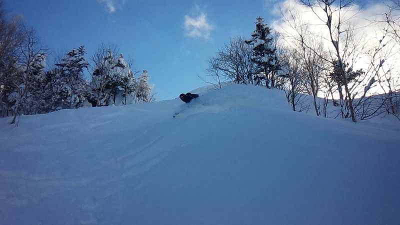 ピーク直下はドライだけど風で飛ばされた雪が固め、更にその下はもモフモフのpow。