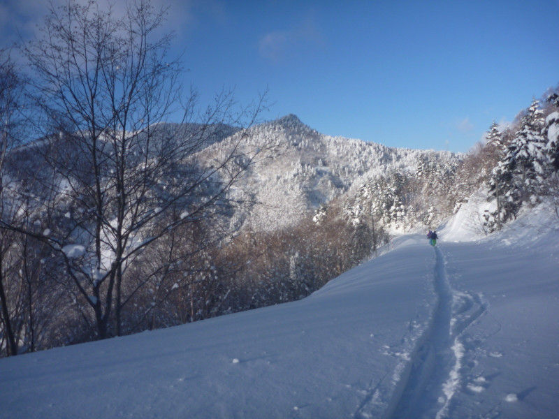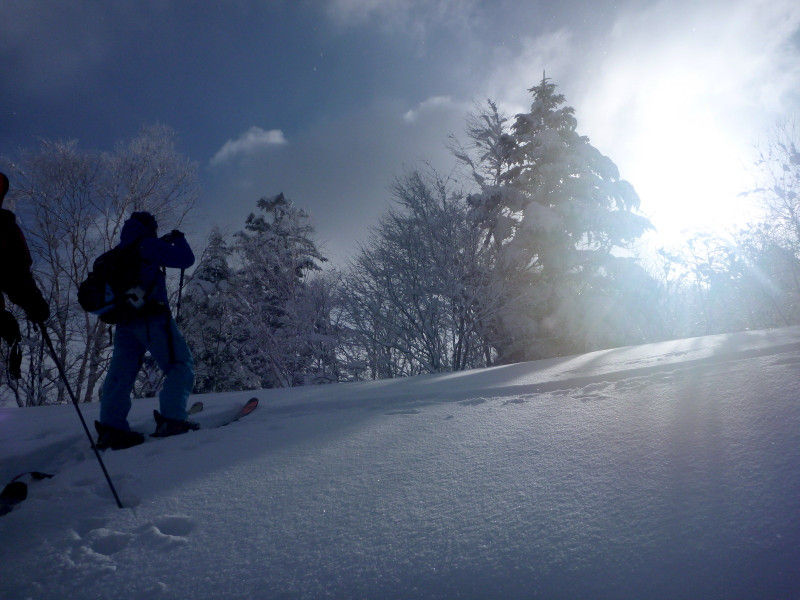 さらさらの粉雪をサクサク登っていく。